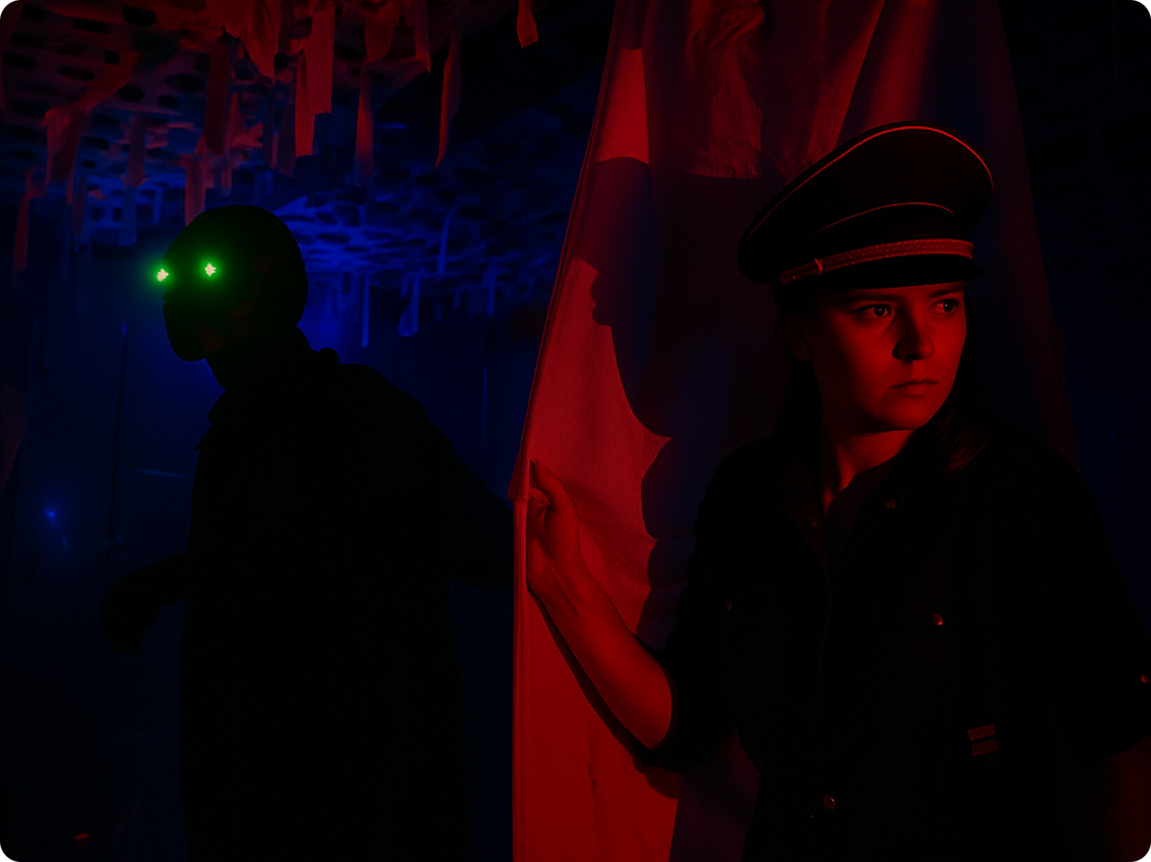 Разумеется, все наши актеры настоящие. Помните, что они тоже люди, а не машины. Поэтому постарайтесь, пожалуйста, соблюдать осторожность при взаимодействии с ними. Не стоит использовать против них физическую силу или как-то оскорблять, если вам что-то не нравится. Лучше позовите их после квеста, чтобы обнять и сказать “спасибо”.
